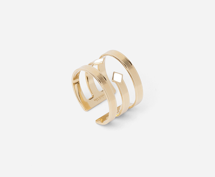 Bague ajustable en métal doré à motif géométrique gravé, ajouré et émaillé