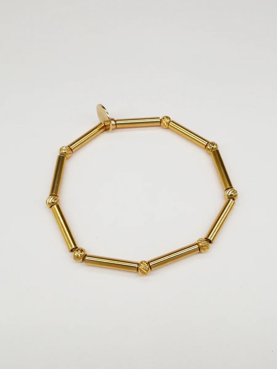 Minimaliste et tendance, le bracelet Bichou à tige dorée signé Scrunchie is Back est l’accessoire chic à porter au quotidien. Avec sa fine tige dorée centrale et son montage discret, ce bijou made in France apporte une touche d’éclat tout en restant léger et confortable.