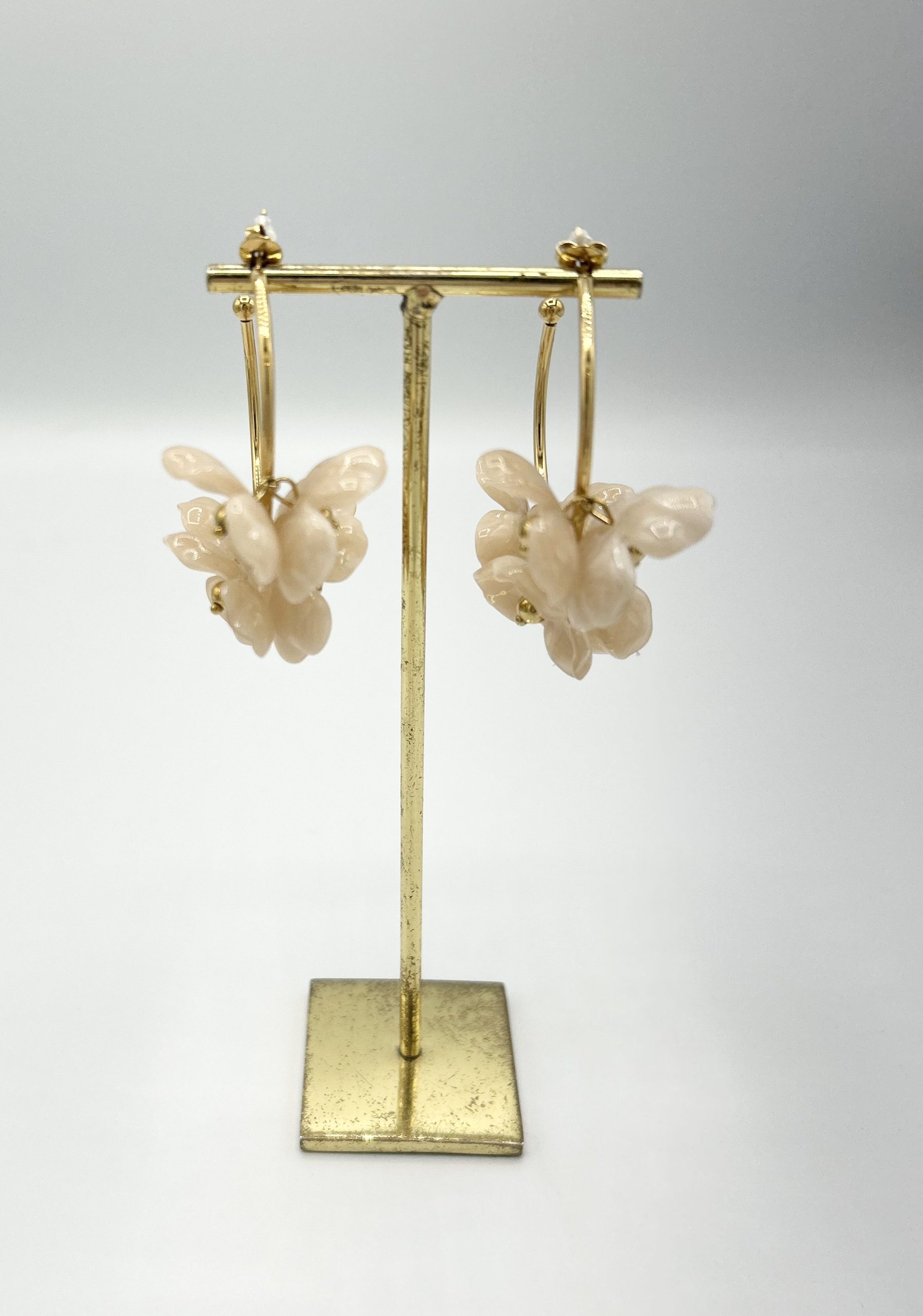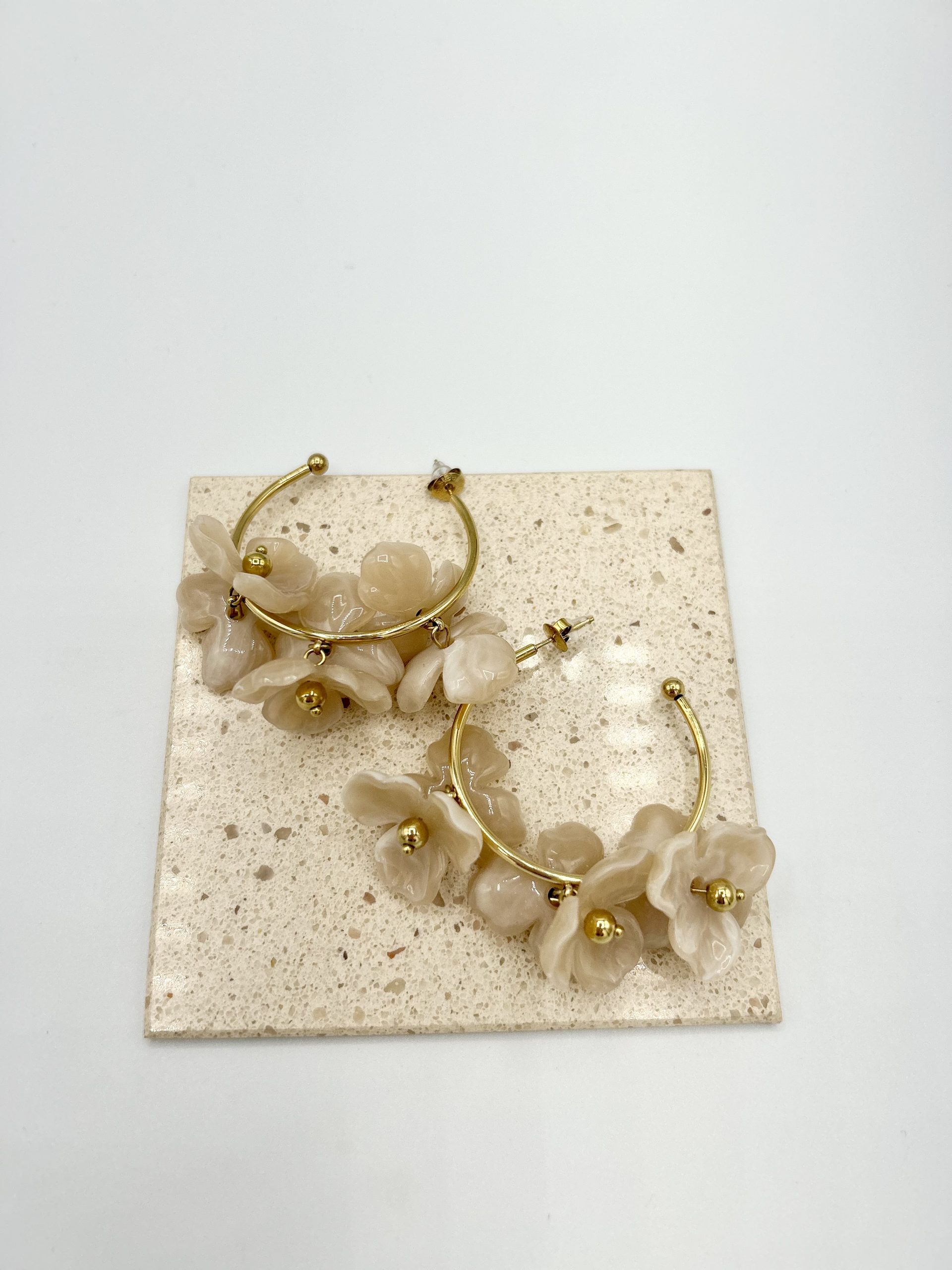 Boucles d’oreilles grande créole pampille de fleurs nacre Héliance