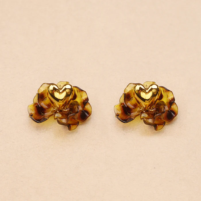 Boucles d’oreilles Lyséa en acier inoxydable, délicatement façonnées en forme de cœur et ornées de fines feuilles nacrées qui dansent à chaque mouvement ✨