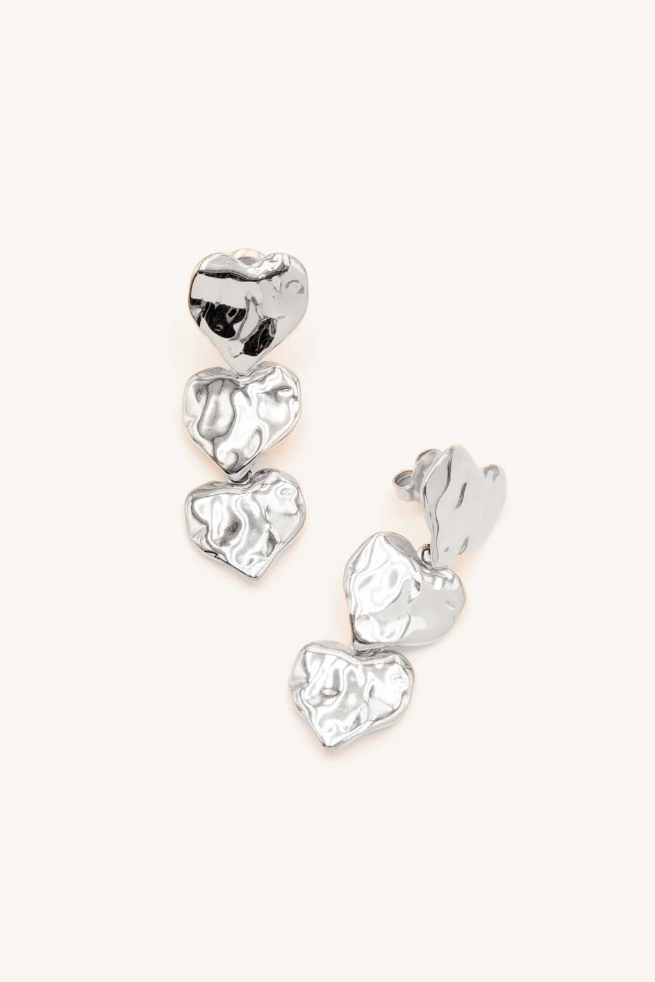 Boucles d’oreilles pendantes en acier inoxydable composées de 3 coeurs martelés.