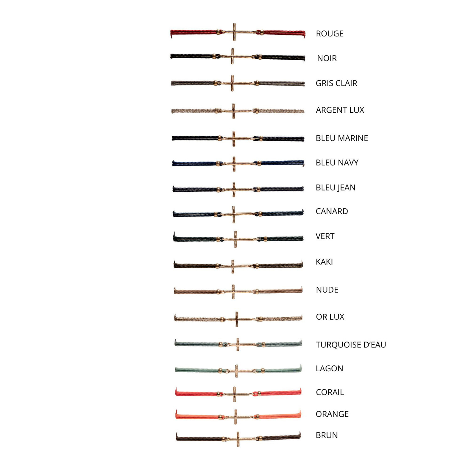 Bracelet Croix en Corde de guitare sur cordon couleur or lux SING A SONG