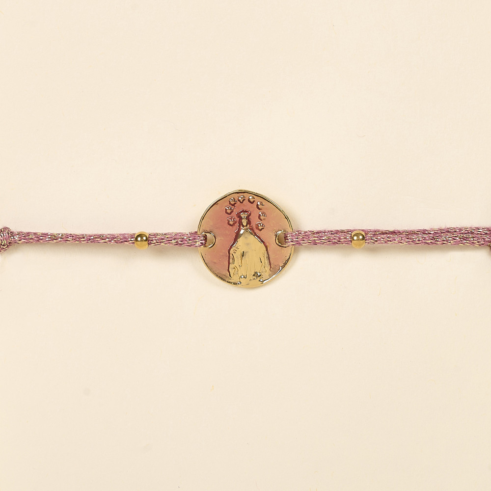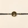 Le bracelet Liam est un bracelet coulissant en lurex, orné d’un maillon central représentant une silhouette céleste couronnée de huit étoiles. Émaillée à la main dans notre atelier et délicatement parsemée de très fines paillettes dorées, cette figure symbolise la lumière, la protection et la paix intérieure. Elle incarne la présence bienveillante d’un amour qui veille.