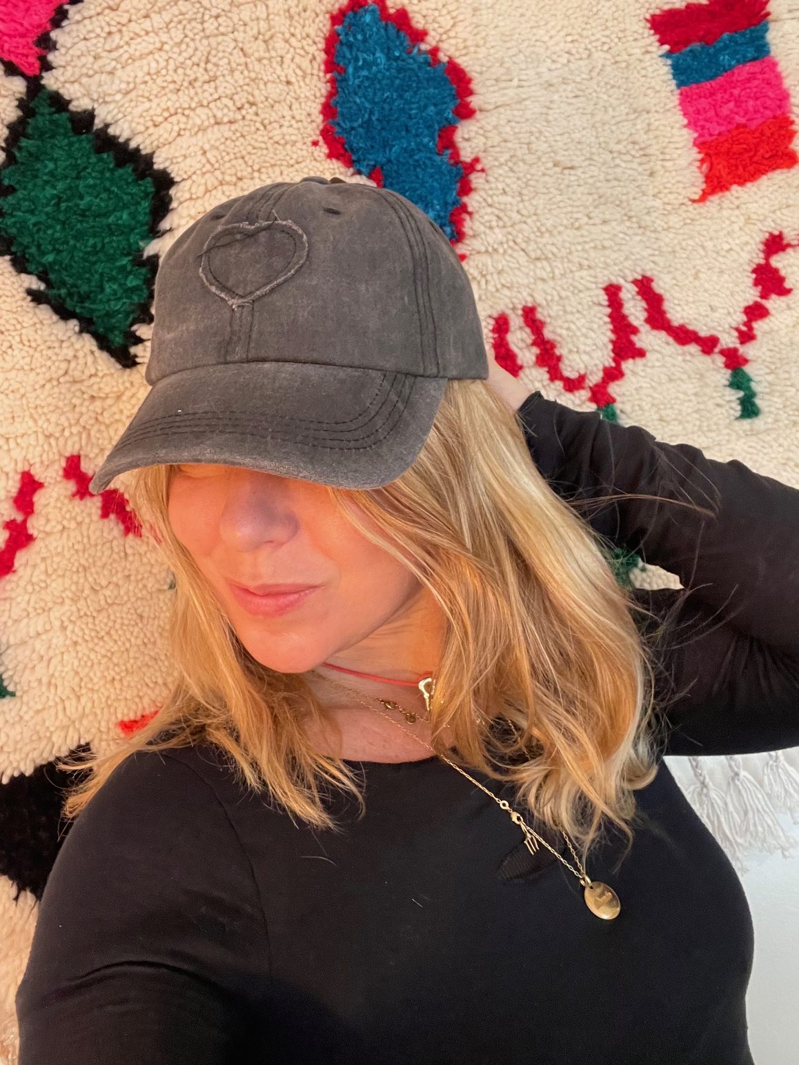 Casquette unie motif coeur, Taille réglable, 100% Coton