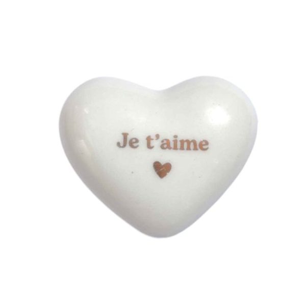 Un petit cœur en céramique décoré d’un petit mot « Je t’aime » en noir !