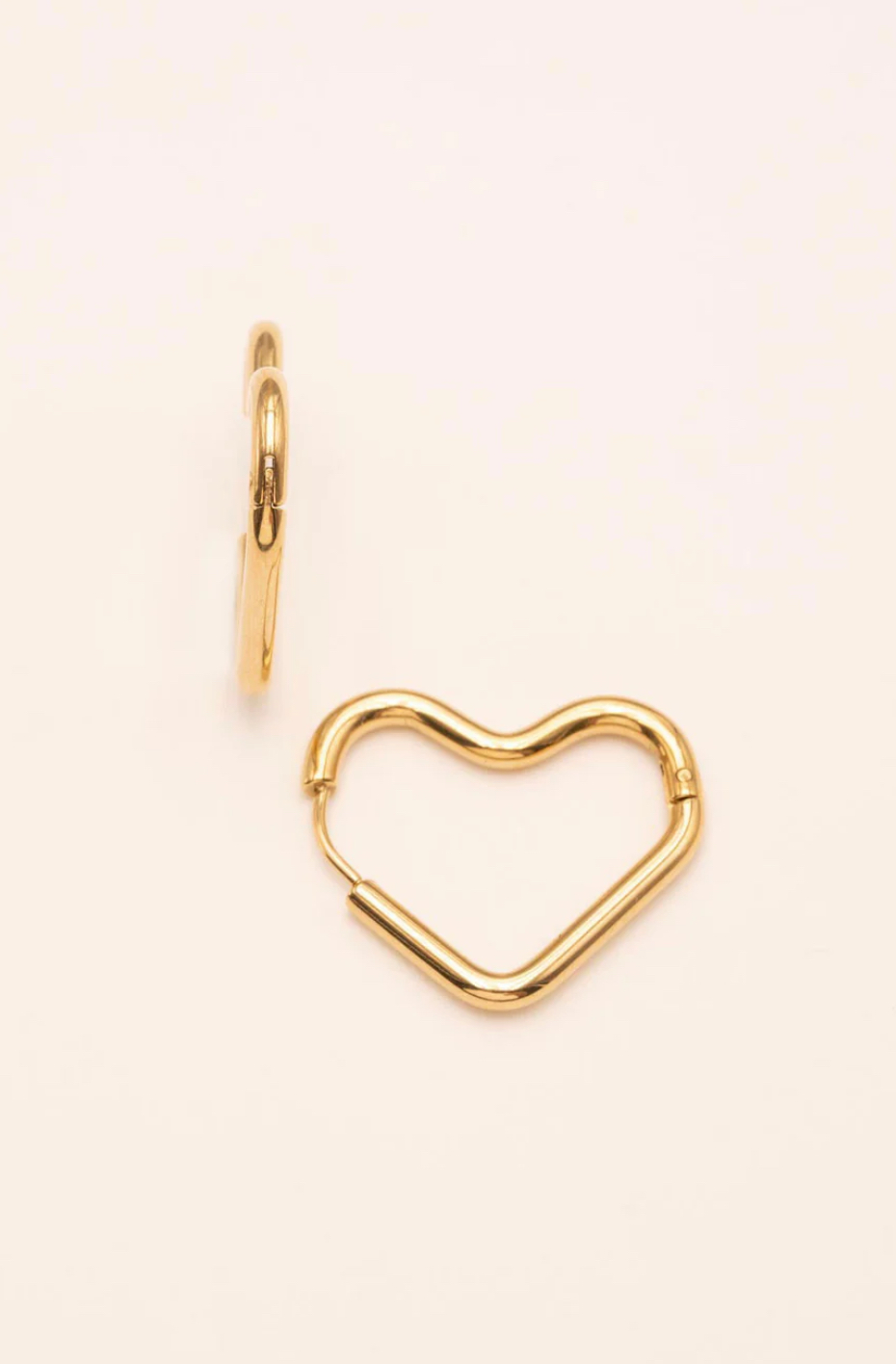 Boucles d’oreilles type créoles à fermoir charnière en acier inoxydable en forme coeur.