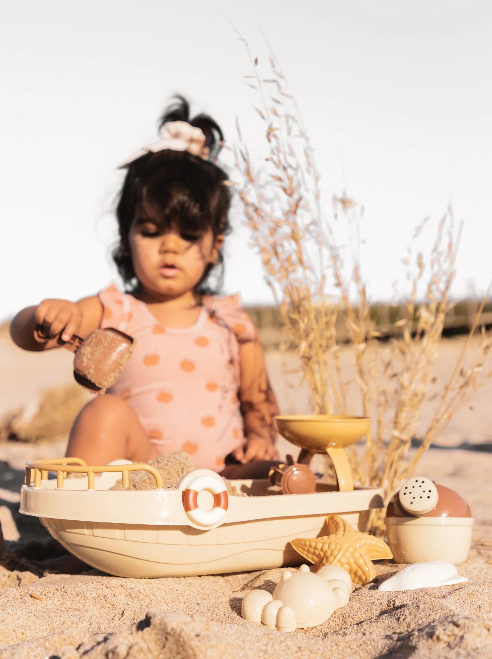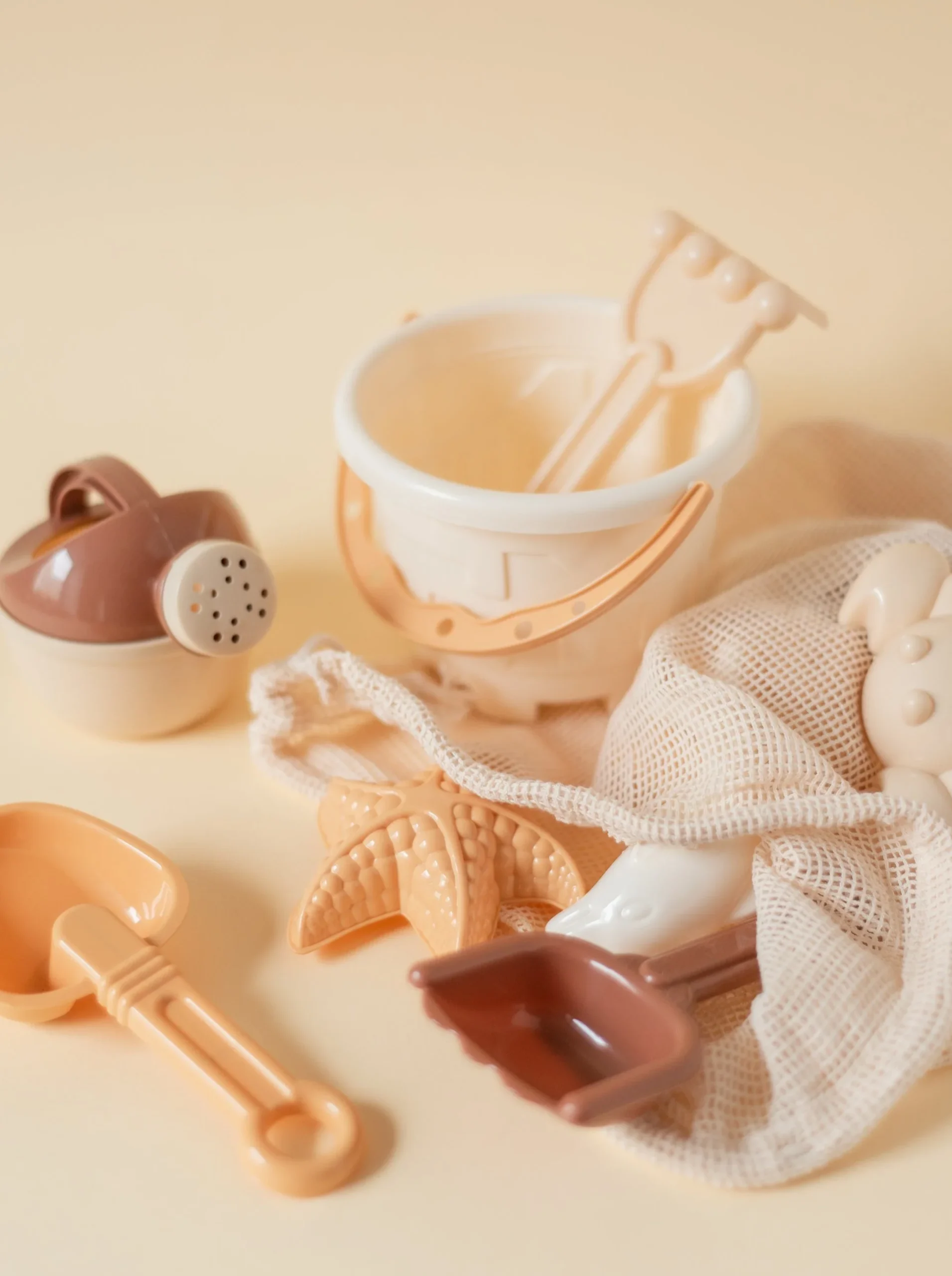 Notre ensemble de jouets de plage d’été, spécialement conçu pour les bébés et les enfants, est fabriqué à partir de bouteilles recyclées et se compose de 14 pièces qui feront partie des aventures imaginaires des tout-petits : 4 pelles, 6 moules, 1 arrosoir, 1 seau, 1 moulin à eau et 1 bateau.