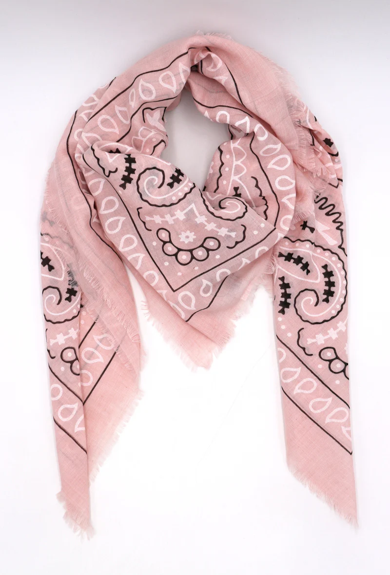 Grand carré imprimé bandana, 80% Polyester 20% Coton, Dimensions : 120 x 120 cm