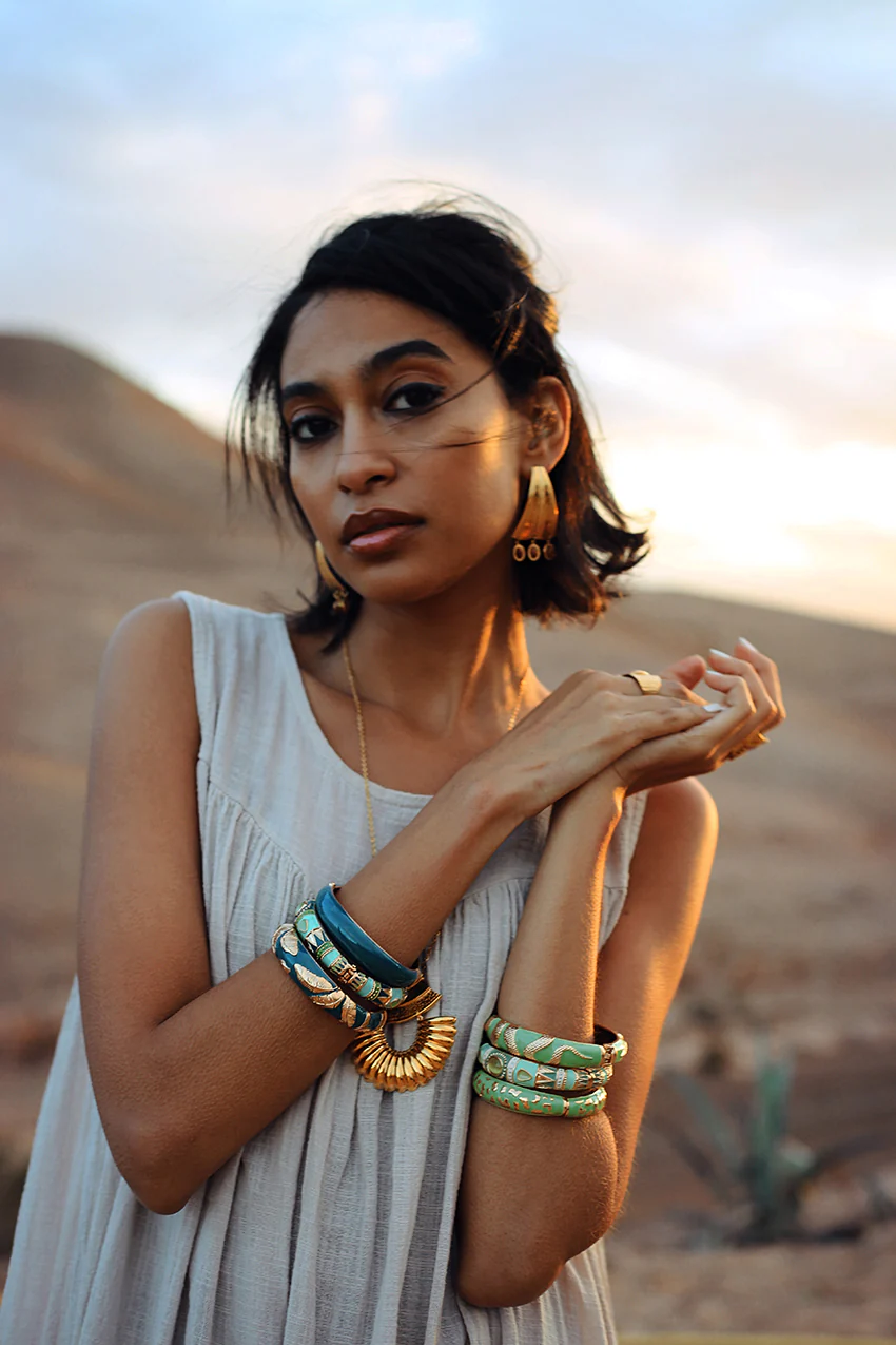 Les bracelets Amok, pièces signatures de la marque sont entièrement dessinés par Margot Falcy, fondatrice d’Argelouse. Ils sont soigneusement gravés avec notre logo « Argelouse » qui atteste de leur authenticité.