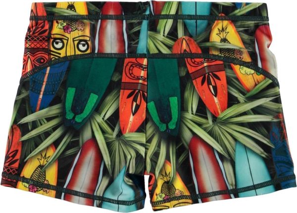 Norten est un maillot de bain court avec une impression de planche de surf inspirée du tiki. Liens intérieurs pour le resserrer. Maillot de bain idéal pour la piscine!