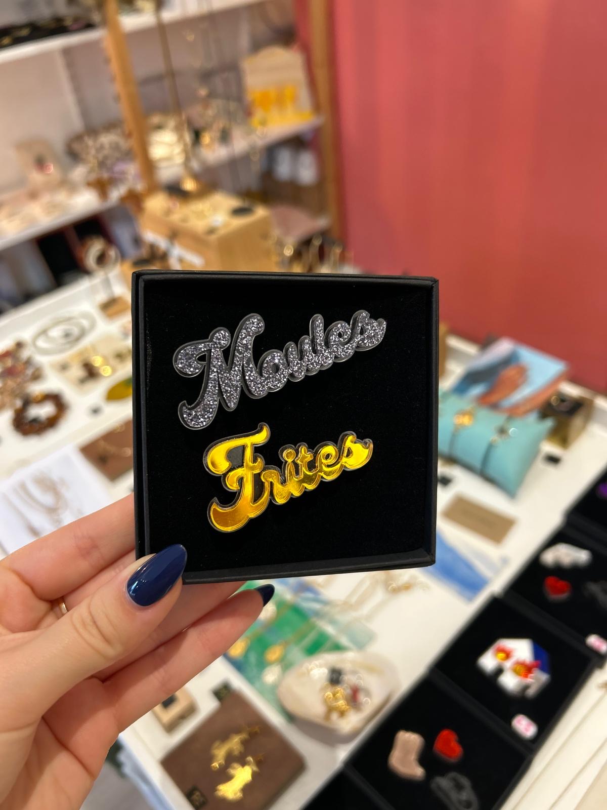 Pin’s double en plexi miroir, fait main par une créatrice de Romainville.