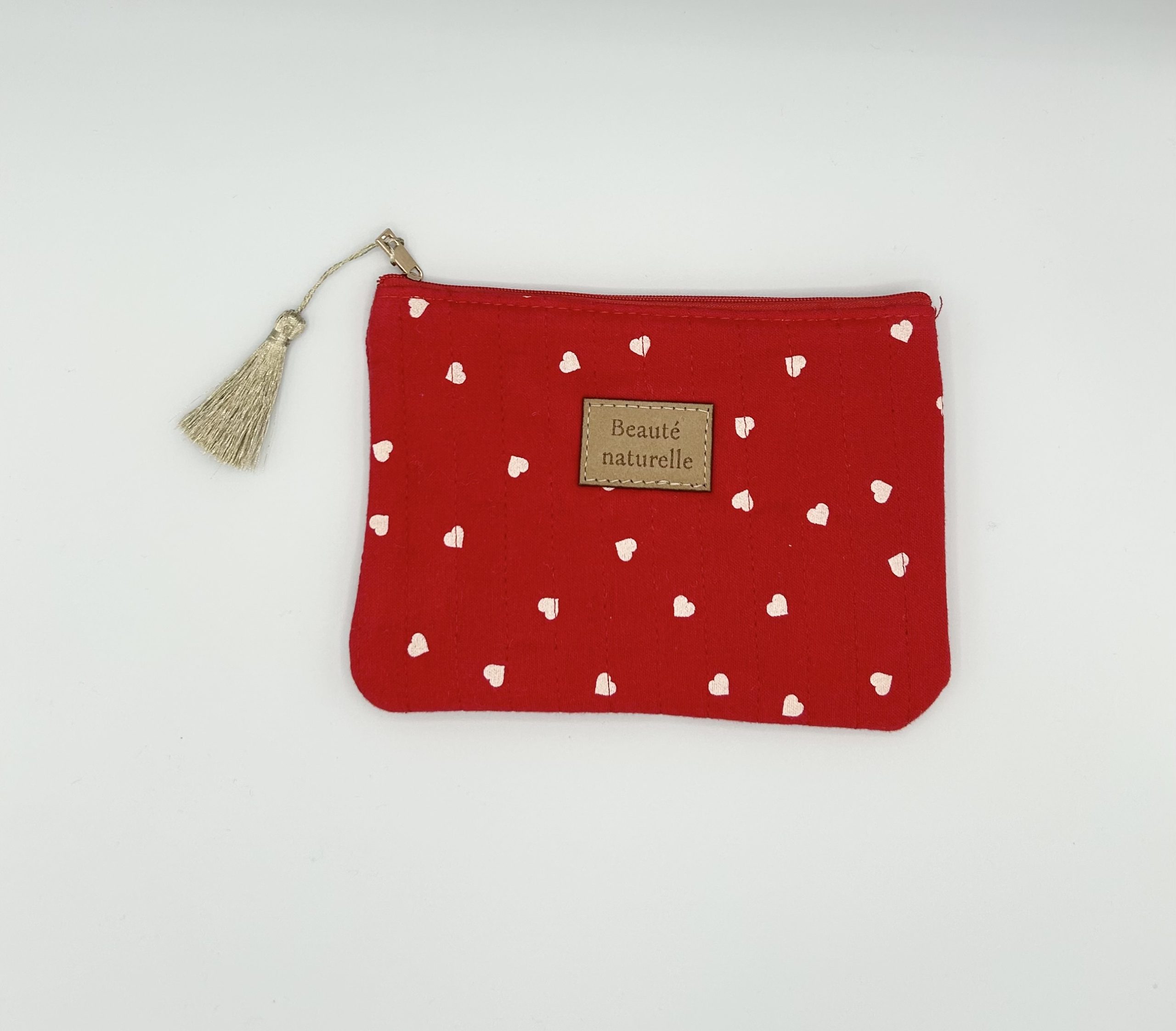 Pochette « Beauté naturelle » imprimé coeurs, 100% Polyester, Dimensions : 20 x 14 cm