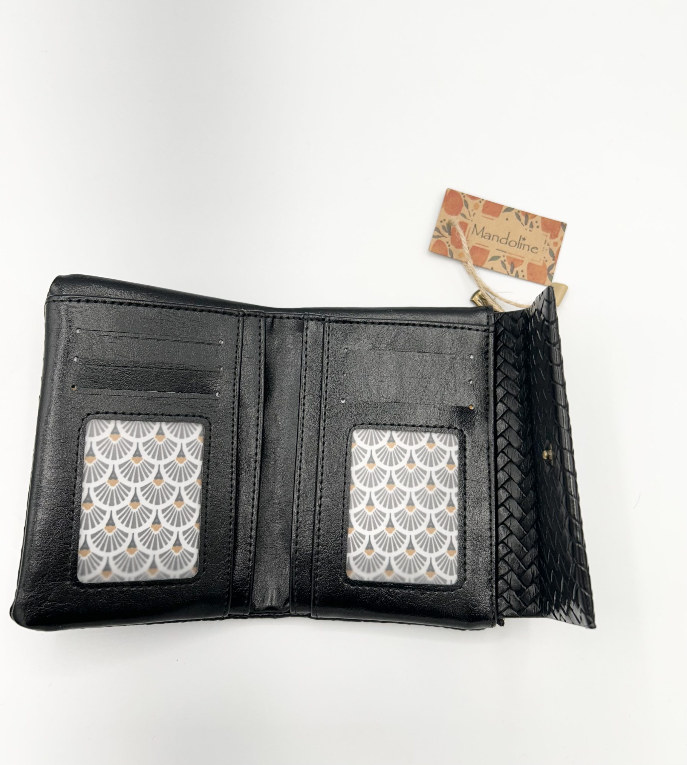 Porte monnaie de couleur taupe avec plusieurs rangements pour les cartes dont un rangement fermé pour les pièces