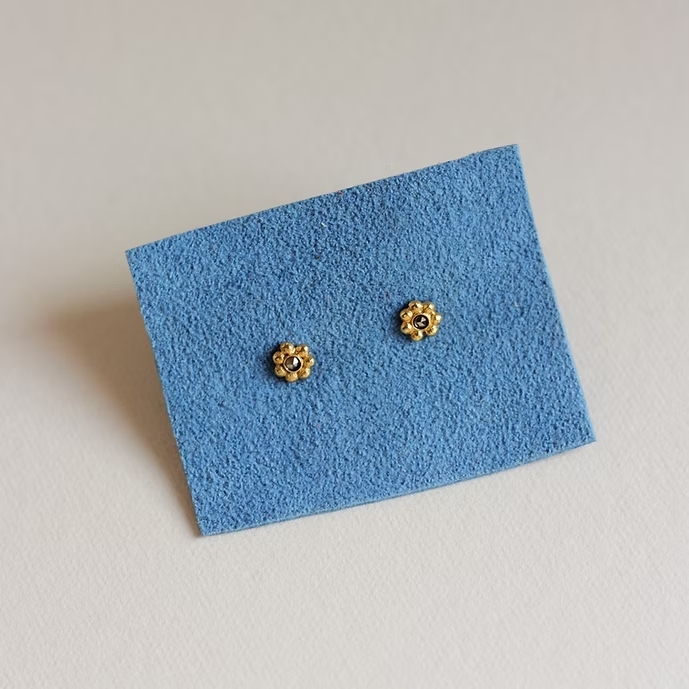 Les puces BALI sont de minuscules boucles d’oreilles en forme de petites fleurs, réalisées avec des perles de métal que l’on retrouve dans les bijoux balinais. Les pierres de marcassite viennent rajouter une touche d’éclat à ce bijou fin et délicat.