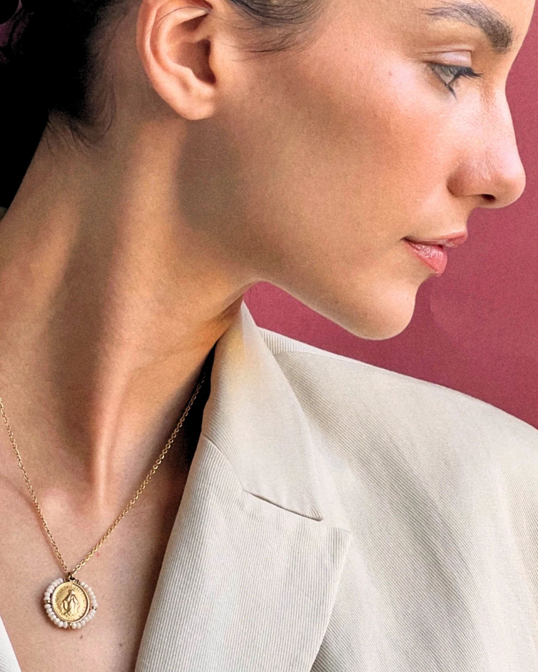 Disponible dans de nombreuses couleurs différentes, notre collier médaille Santa Maria est un bijou hypoallergénique qui se porte en toutes circonstances.