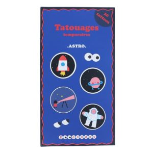 Grâce à ce petit cadeau à offrir à un enfant, on laisse l’opportunité de s’exprimer et la liberté à son imagination, sa créativité. Une belle occasion de partir à l’aventure avec nos planches de tatouages temporaires Astro !